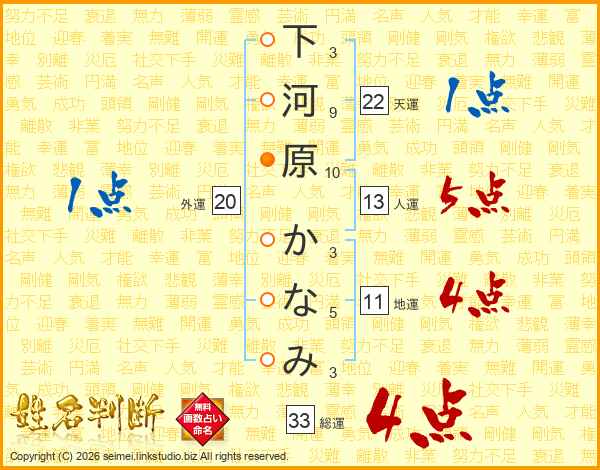 下河原かなみさんの総運は33画の4点!