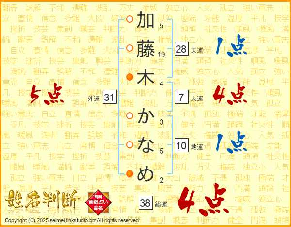 加藤木かなめさんの外運は31画の5点!