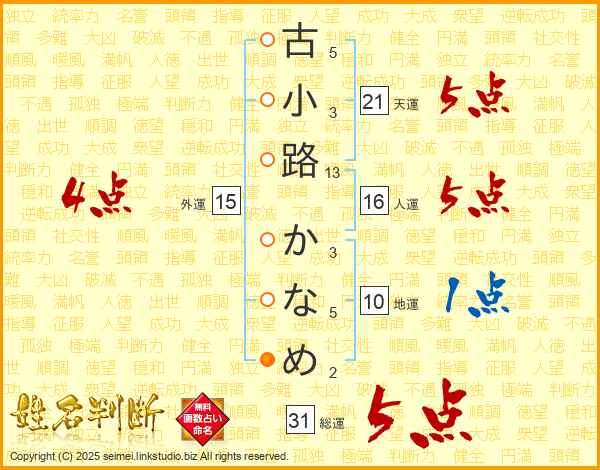 古(5画)小(3画)路(13画) か(3画)な(5画)め(2画)