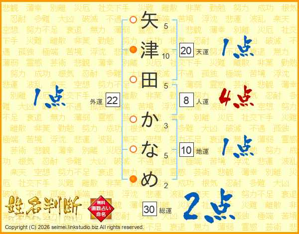 矢津田かなめさんの総運は30画の2点!
