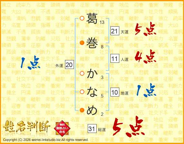 葛(13画)巻(8画) か(3画)な(5画)め(2画)