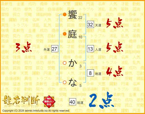 饗庭かなさんの人運は13画の5点!