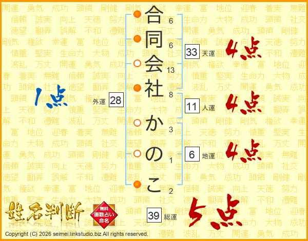 合同会社かのこさんの総運は39画の5点!