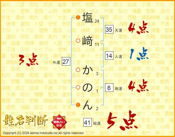 塩﨑かのんさんの総運は41画の5点!