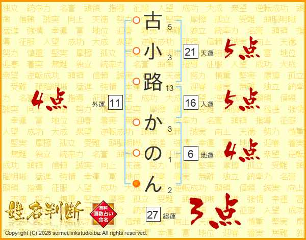 古小路かのんさんの天運は21画の5点!