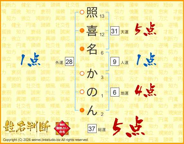 照喜名かのんさんの総運は37画の5点!
