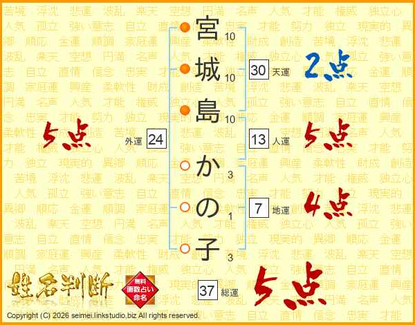 宮城島かの子さんの総運は37画の5点!