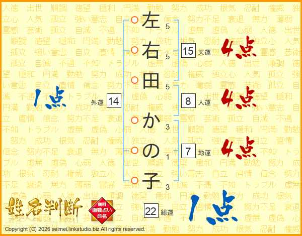 左右田かの子さんの総運は22画の1点!