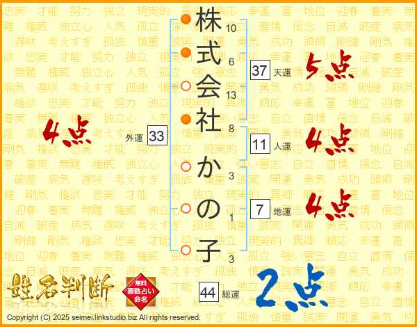 株式会社かの子さんの総運は44画の2点!