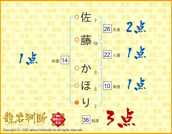 佐(7画)藤(19画) か(3画)ほ(5画)り(2画)