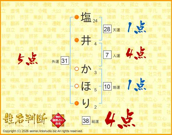 塩(24画)井(4画) か(3画)ほ(5画)り(2画)