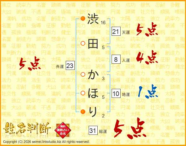 渋田かほりさんの総運は31画の5点!