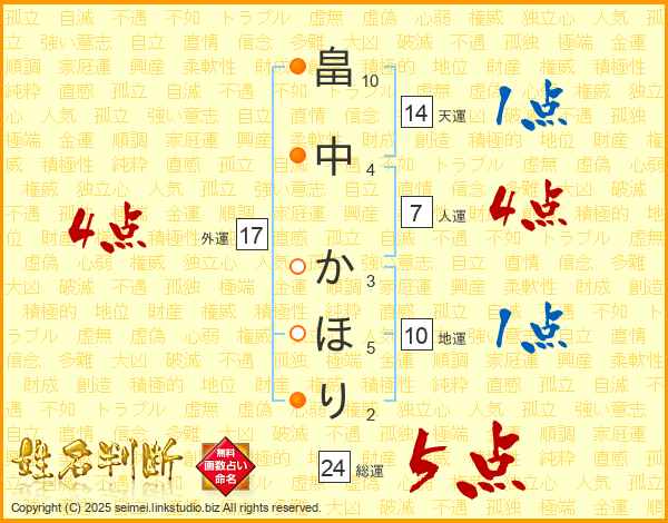 畠中かほりさんの外運は17画の4点!