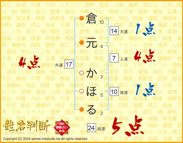 倉元かほるさんの外運は17画の4点!
