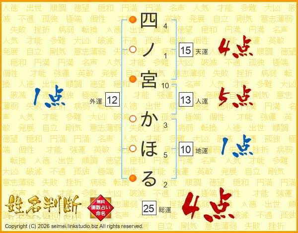 四(4画)ノ(1画)宮(10画) か(3画)ほ(5画)る(2画)