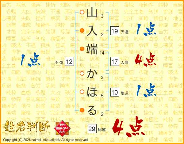山入端かほるさんの総運は29画の4点!