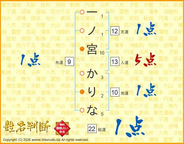 一ノ宮かりなさんの総運は22画の1点!