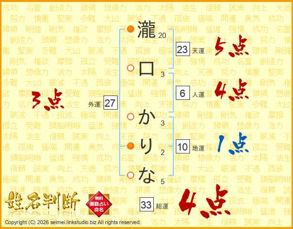 瀧口かりなさんの総運は33画の4点!