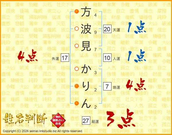 方波見かりんさんの外運は17画の4点!