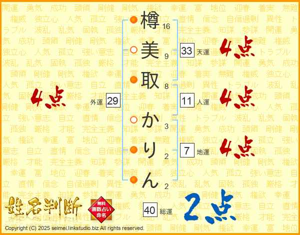 樽(16画)美(9画)取(8画) か(3画)り(2画)ん(2画)
