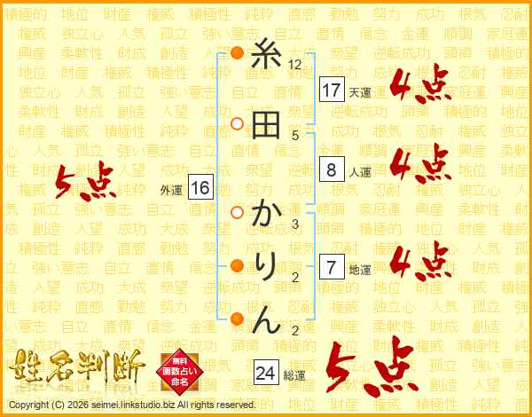 糸田かりんさんの外運は16画の5点!