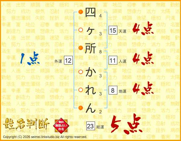 四ヶ所かれんさんの総運は23画の5点!