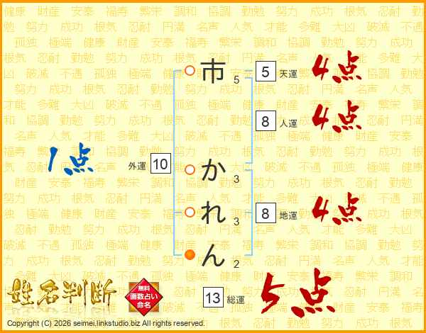 市かれんさんの総運は13画の5点!