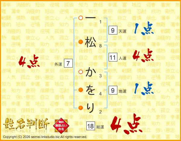 一松かをりさんの人運は11画の4点!