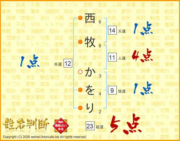西牧かをりさんの総運は23画の5点!