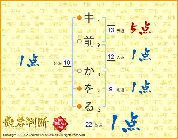 中前かをるさんの天運は13画の5点!