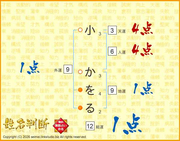 小かをるさんの総運は12画の1点!