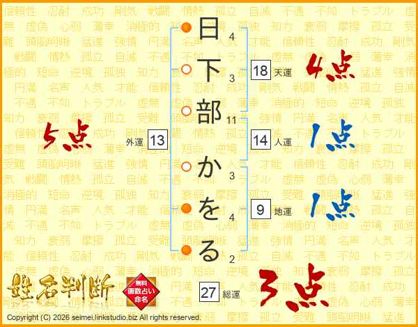 日下部かをるさんの天運は18画の4点!