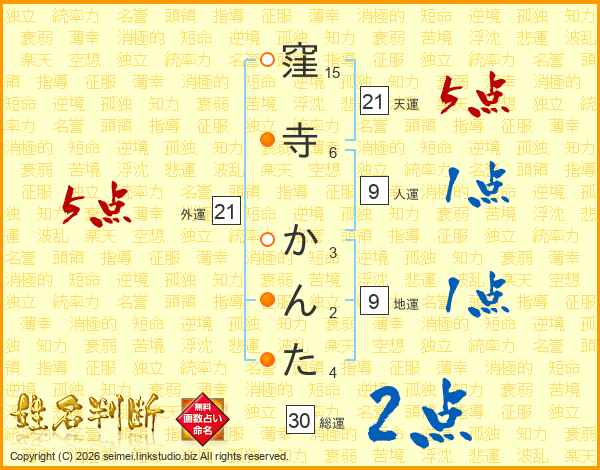 窪(15画)寺(6画) か(3画)ん(2画)た(4画)