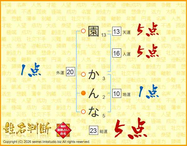 園かんなさんの天運は13画の5点!