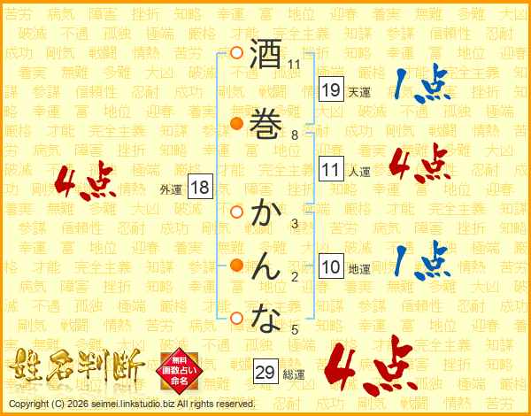 酒巻かんなさんの外運は18画の4点!