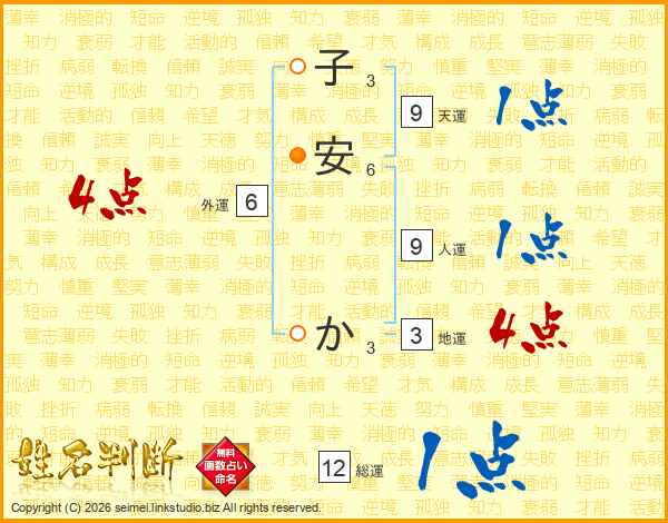 子安かさんの総運は12画の1点!
