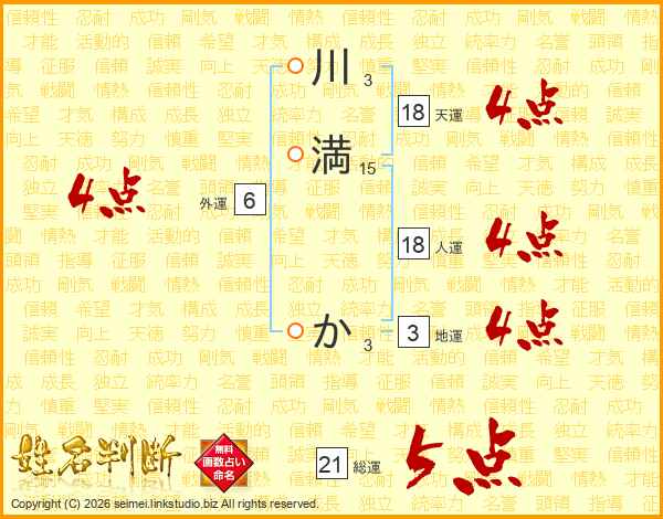 川満かさんの天運は18画の4点!