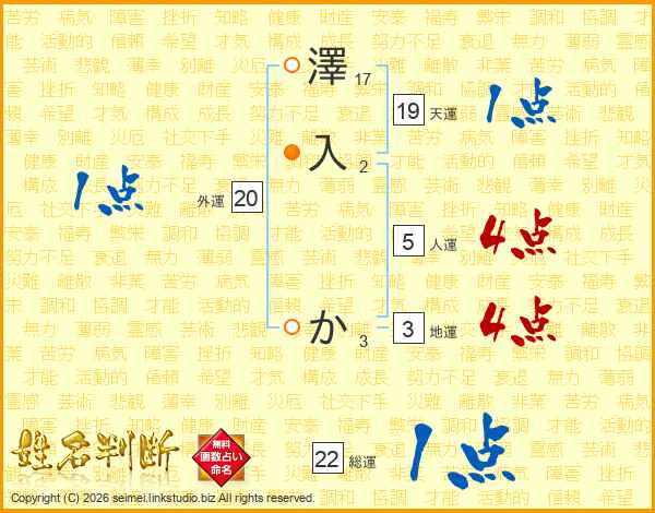 澤入かさんの天運は19画の1点!