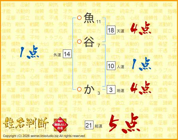 魚谷かさんの総運は21画の5点!