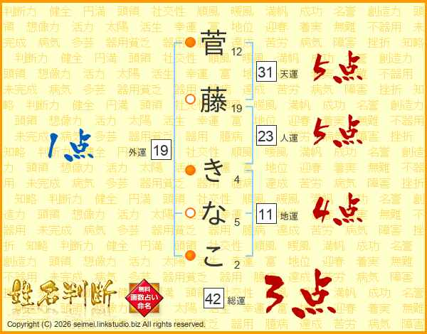 菅藤きなこさんの天運は31画の5点!