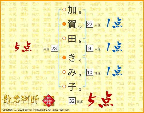 加賀田きみ子さんの総運は32画の5点!