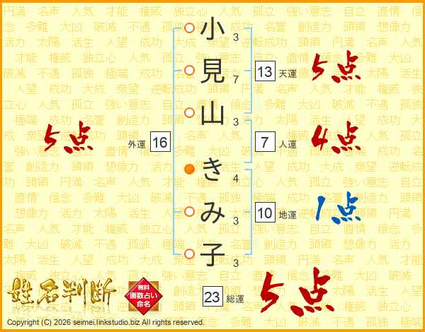 小見山きみ子さんの総運は23画の5点!