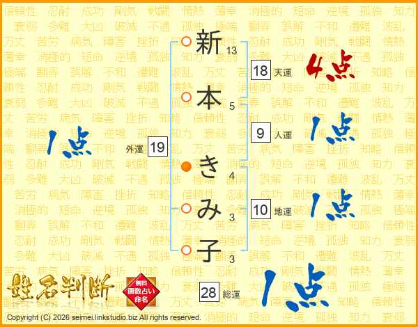 新(13画)本(5画) き(4画)み(3画)子(3画)