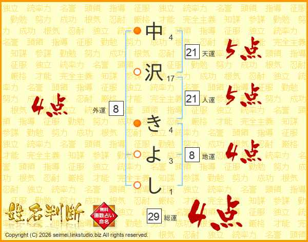 中沢きよしさんの総運は29画の4点!