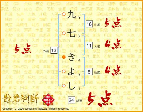 九七きよしさんの総運は24画の5点!