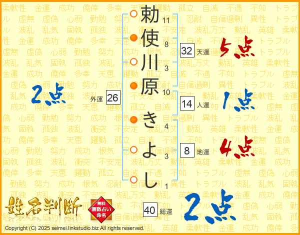 勅使川原きよしさんの総運は40画の2点!