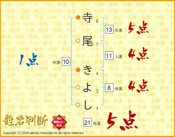 寺尾きよしさんの総運は21画の5点!