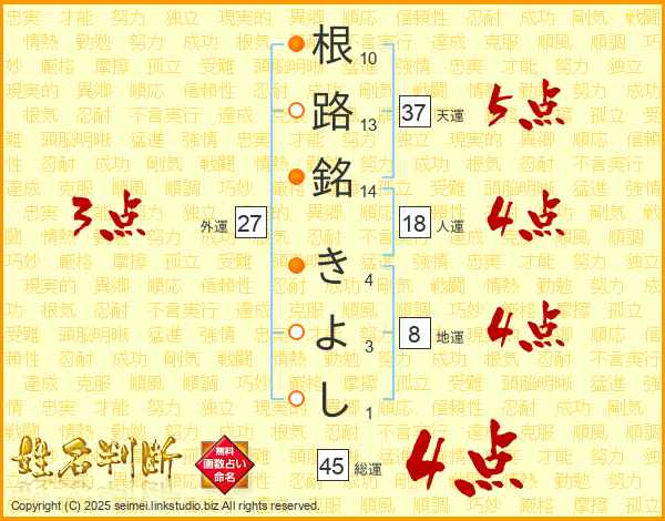 根(10画)路(13画)銘(14画) き(4画)よ(3画)し(1画)