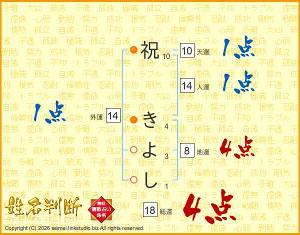 祝きよしさんの総運は18画の4点!