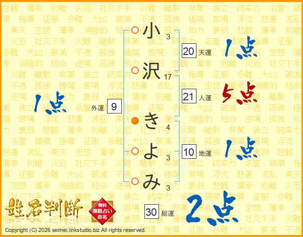 小(3画)沢(17画) き(4画)よ(3画)み(3画)